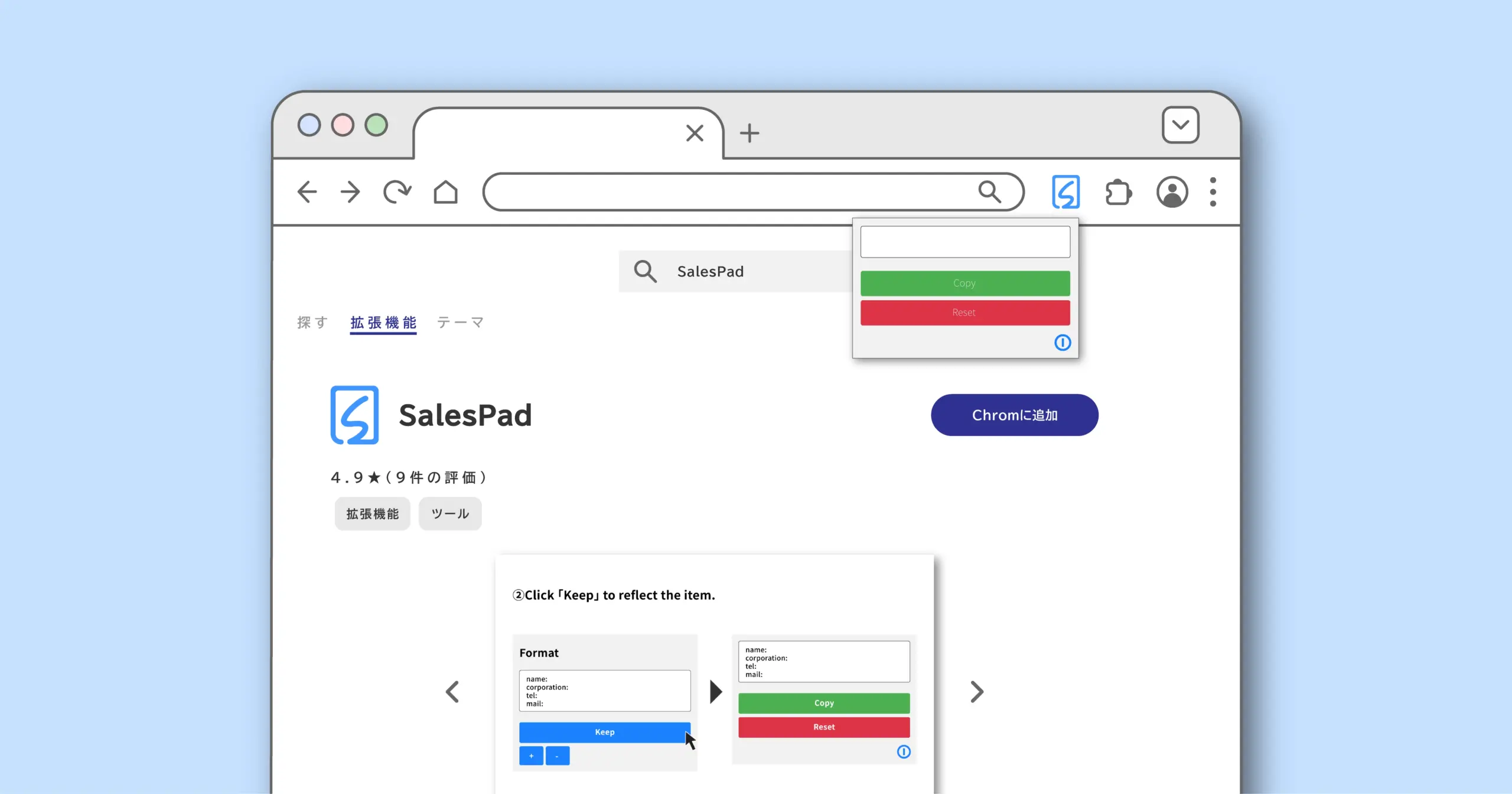 掲載:https://chromewebstore.google.com/detail/salespad/jennoilmkoghfkakdplcdmeppdpnilni?hl=ja&utm_source=ext_sidebar